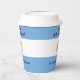 Feiern Sie den Unabhängigkeitstag Argentiniens mit diesen festlichen Papiertassen, die die ikonischen blau-weiß Farben der argentinischen Flagge mit Begrüßungen und Datum auf den blauen Teilen der Flagge. ¡Feliz Día de la Independencia! Umkehrung zeigt identisches Design. Design © W.H. Sim. Weitere Informationen unter zazzle.com/expressionsoccasions