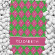 Süßes, maßgeschneidertes Golftuch-Design mit einem vornehmen rosa und grünen Argyle-Karo-Muster mit weißen Akzenten. Ein kräftiger rosa Streifen enthält eine benutzerdefinierte Vorlage für Namen oder Initialen. Passen Sie Ihr Design ganz einfach an, indem Sie aus der umfangreichen Zazzle-Schriftbibliothek wählen, mit der Sie den Text mit einer Schriftart personalisieren können, die perfekt zu Ihrem Stil und Ihrer Vorstellung passt! Für individuelle Farbgestaltungswünsche senden Sie bitte eine Nachricht über den "Nachricht"-Link in diesem Angebot. Bitte fügen Sie einen Link oder eine Beschreibung dieses speziellen Designs bei der Nachricht bei.