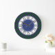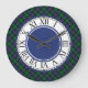 Wall clock with a border of the district tartan for Argyll, Scotland Green, Royal Blue, and Black Scottish Plädoyer Pattern With Bright and Sky Blue Highlights. Choose from round or square clock.