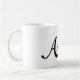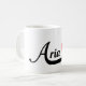 Aria Tasse mit Liebe Herz. Der Buchstabe A ist ein Bild, der andere Text kann für jeden Namen geändert werden, der mit dem Buchstaben A beginnt.