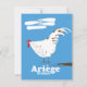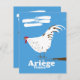 Ariège france, Retro-Reiseplakat mit einer handgezogenen Henne.