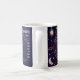 Aries Horoskop zodiac astrologisches Schild Design mit Sternenmonen im Holografen Stil Sonnen Planeten auf einem tiefblauen lila Hintergrund. Ein einzigartiges Design, das die gesamte Tasse umspannt, beinhaltet den Zoonamen, das Symbol, die Konstellation und lustige Ernährungsfakte über Sterne. Ein lustiges Geschenk für jemanden, der vom 21. bis 19. April unter dem Feuerzeichen von Aries geboren ist.