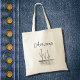 Boho Arizona Wüstenkaktus Tasche, mit einem schwarz-weißen Saguaro Kakteen-Design und einfache schwarze Typografie Schrift. Diese Tasche wurde von Indiamoss handgezeichnet und von den SüdwestUSA und Tucson, Arizona, inspiriert.