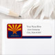Eine grafische Gestaltung einer Staatsflagge von Arizona durch den Künstler/Designer Charmaine Paulson auf einem Rücksendelabel von Arizona. Das Etikett enthält Vorlagen für Ihre Personalisierung