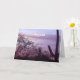 Lila Himmel, Saguaro-Kaktus und Wüstenbürste werden in dieser Fotografiekarte gezeigt, die die Schönheit der Wüste von Arizona zeigt.