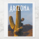 Sonnenlicht Saguaro Kaktus gegen Wüstenhimmel mit "Arizona" in modernem Text Overlay