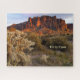 Featured on this puzzle is an original Foto von Karen Coffelt of Superstition Mountain in the late evening light with chainfruit cholla cactus in the foreground as seen from Jacob's Crosscut Trail in the Lost Dutchman State Park in Apache Junction, Arizona, whis of the prettiest parks in the area. Customize this with your name or other text using Zazzle's many different sind styles and colors. Add one or more of the many fun icons that Zazzle has provided for you or customize it in the design tool by clicking on "click to customize further". Have fun making it your own! If you need any help, please don't hesitate to contact me, and I will be more than happy to assist you. You may contact bei KarenCoffelt@wolfmoonartanddesign.com. Thanks for looking! Original Copyright 2016 by Karen Coffelt.
