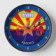 Diese individuell anpassbare Wanduhr zeigt eine Vintage Abbildung in rot, gelb und blau, inspiriert durch die Fahne von Arizona. Personalisieren Sie es heute mit Ihrem eigenen Text und machen Sie es vor Ort zu einem unvergesslichen Souvenir für alle, die den Grand Canyon Staat Lieben.