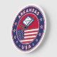 Abzeichen von Arkansas mit Fahne von Arkansas und Fahne von US-Farben, gerundete Form. Emblem von Arkansas. Siegel von Arkansas. USA Staaten Collection