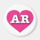 Dieser Magnet verfügt über ein pulsierendes, heiß rosa Herz, das die fett-, weiß-, Großbuchstaben AR, die offizielle Abkürzung für Arkansas, den natürlichen Staat, enthält.