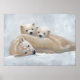Dieses Gemälde zeigt eine liebliche Familie Eisbären, die sich selbst im Schnee warm fühlen.