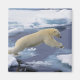 Arktis, Svalbard, Polar Bär, der sich ausdehnt und aufsteigt, während er von einer Eisscholle zur anderen mit blauem Wasser abspringt � Stoney und Jan Edwards / DanitaDelimont.com