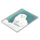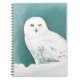 Schneeeule sitzt im Schnee der Arktis in einer aquamarinen Himmelslandschaft