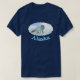 Weiß auf Weiß. Ein digitales Bild eines arktischen Fox, Vulpes lagopus, auf dem Polareis. Die Sonne hängt tief im hellblauen arktischen Himmel. Nicht an der Sonne starren, da es Ihren Augen schaden kann. Text liest, "Alaska" erscheint in leuchtendem Blau und Weiß. Der Arktische Fox ist in tiefer Kälte bequem; er fängt nicht an zu zittern, bis die Temperaturen aufgrund seines dichten, vielschichtigen Fells auf etwa -70 °C (-94 °F) fallen. Weitere Anpassungen an ein kühles Klima sind Fell auf den Fußsohlen, kurze Ohren und ein kurzes Maultier. Arktische Füchse leben in Pfahlen, in einem Blizzard können sie sich in den Schnee stürzen, um Unterschlupf zu schaffen. Das Fell des arktischen Fuchses, manchmal blau-grau, ist eine sehr effektive Wintertarnung. Die natürlichen Farbtöne ermöglichen es dem Tier, sich in die Umwelt zu integrieren. Während der kurzen warmen Jahreszeit wechselt ihr Fell zu braun oder grau, wieder Schauspiel als Tarnung in Tundra-Felsen und Pflanze. Im Winter, wenn die Beute knapp ist, folgen die Füchse der Jagd auf Polarbären auf der Eispackung, die auf Schrott füttre. Während des Sommers fressen Nagetiere, Vögel, Eier und sogar Fische. Sie werden auch auf Beeren und Algen gefüttert. Arktische Füchse haben ein sehr scharfes Gehör, unterstützt von ihren breiten, nach vorne gerichteten Ohren, die es ihnen ermöglichen, die genaue Position ihrer Beute unter dem Schnee zu finden. Wenn es etwas unter dem Schnee bewegen hört, springt es in die Luft und springt durch den Schnee, um seine Beute zu fangen. Der Bereich der arktischen Füchse ist umpolar; er ist im ganzen Norden zu finden. Das einzige in Island geborene Landtier erreichte es, indem es am Ende der letzten Eiszeit über dem Eis spazierte.