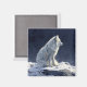 Ein wunderschöner, weißer, arktischer Fuchs, der in einem verschneiten Wunderland sitzt, eine ruhige Szene, die in einem Ölgemälde auf einem malerischen Magneten eingefangen wurde. Ideal, um die Küche eines Fuchsliebhabers zu dekorieren.