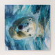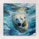 Arktische Illusion: Der schwimmende Monarch. Ein atemberaubendes visuelle eines majestätischen Eisbären, der aus dem eisigen Wasser auftaucht, gefangen in fließend stilisierten Wasserfarbenstrichen. Das Zusammenspiel von Licht und Wasser erzeugt einen ätherischen Effekt, als ob der Eisbär zwischen zwei Welten existiert - Realität und Traum.