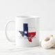 Arlington, Texas Flagge Karte Kaffee Tasse. Dieses Design zeigt "Arlington" in einem Skript, kalligraphischen Stil Schriftart in Weiß mit hellgrauer Kontur auf der Karte des Staat, der mit der Flagge von Texas gefüllt ist. Diese Tasse aus der Heimatstadt ist eine großartige Möglichkeit, Ihren Kaffee zu genießen und zu zeigen, dass Sie stolz sind, aus Arlington, TX, zu sein.