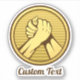 Gold runde Medaille mit zwei Händen in Arm Wrestling. Eigener Text.