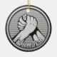 Silber runde Medaille mit zwei Händen in Arm Wrestling. Benutzerdefinierte Hintergrundfarbe. Benutzerdefinierter Text auf beiden Seiten.