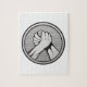 Silber runde Medaille mit zwei Händen in Arm Wrestling. Benutzerdefinierte Hintergrundfarbe. Eigener Text.