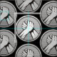 Silber runde Medaille mit zwei Händen in Arm Wrestling. Benutzerdefinierte Hintergrundfarbe.
