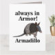 Armadillo Animal Funny Card originally designed by Nisha Prabhu. Send a smile with our Armadillo Animal Funny Card! Featuring adorable and amusing armadillo in silly pose, this card adds a lighthearted and whimsical touch to any occasion. Perfect for birthdays, thank-yous, or just to brighten someone's day, its fun design is sure to bring joy and laughter.