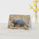 Armadillo in Texas, ein Teil seines Ohrs ist wahrscheinlich von einem Raubtier vermisst. Leere Karte für Ihre individuelle Nachricht.