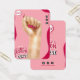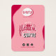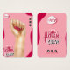Die Karte zeigt eine von Hand gezeichnet Abbildung einer Hand, um zu erkennen, wie das Armband auf ein Handgelenk gelegt wird, sowie einen rosa Hintergrund und die Schrift "Lasst uns die Kurve flach machen." "Unsere Armbänder-Grafikkarten sind der perfekte Weg, um Ihren Schmuck zu zeigen und neue Kunden anzuziehen, wenn Sie ein Schmuckgeschäft besitzen."