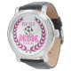 Uhr, Klassische Damenuhr mit schwarzen Lederarmband
