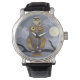 Uhr, Klassische Damenuhr mit schwarzen Lederarmband