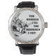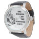 Armbanduhr mit Alice im Wunderland-Motiv eines weißen Kaninchens mit Schrift, die besagt: "Der Hurrier, den ich hinunterfahre, bekomme ich!"