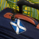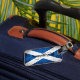 Armstrong Familienname/Clan im Grunge-Schriftart auf Schottland - Hintergrund der St. Andrews-Flagge