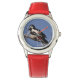Kinderuhr aus Edelstahl mit rotem Lederarmband