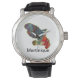 Uhr für Mann, schwarz, mit einer Karte von Martinique in Madras auf dem Hintergrund.