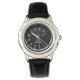 Uhr, Klassische Damenuhr mit schwarzen Lederarmband