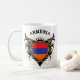 Cooler Wappenentwurf mit nationaler Flagge von Armenienfarben und -titel: Armenien. Großes armenisches Stolzgeschenk.