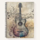 Una guitarra y una partitura, ilustradas en acuarela, que capturan la esencia de la música y la creatividad. Un diseño emotivo y artístico que celebra la unión entre el instrumento y la melodía.