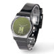 Army grünen Oliven geometrischen Mesh Muster Monogram Armbanduhr. Mit Monogramm Personalisiertes Geschenk-Uhrenzubehör für ihn mit Ihrem eigenen Initial und Namen. Army grüne Oliven Gefälle geometrische Mesh Muster. Army grüne Gefälle geometrische Maschenmuster dreiecke ombre. Army green dunkelolivhue für Soldatengeschirr, Camouflage. Es imitiert natürliche militärische Landschaften, Widerstandskraft, Ausdauer, Widerstandskraft. Erdige Untertöne verbinden sich mit der Natur, Erdung. Symbolisiert militärisches Vermächtnis, Nutzen im Freien.
