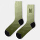 Army light green geometric mesh pattern Monogram Socks. Personalize gift for him with custom initial and name.