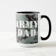 Eine wirklich wunderbare Tasse für den militärischen Papa, mit dem tatsächlichen Foto der Tarnung von einer Armeuniform als Hintergrunddesign. Es macht ein großes Vatertagsgeschenk! Es gibt auch die Möglichkeit, den Stil und die Farbe Ihrer Tasse zu wählen.
