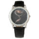 Uhr, Klassische Damenuhr mit schwarzen Lederarmband