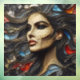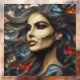 Ein Porträt einer wunderschönen Frau, die Arroganz in einem abstrakten Stil ausstrahlt. Die Farbglastechnik verwendet künstlerisch-goldene Linien, die Rot-, Orange-, Blau- und Holzkohlefarben miteinander verbinden. Ihre Haare kaskadieren wie Wellen im Ozean und fügen dieser fesselnden Darstellung des Vertrauens eine Touch lebendiger Eleganz hinzu.