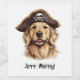Arrr Matey Pirate Golden Retriever Dog Skull Weinetikett