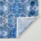 Ein komplexes geometrisches Muster mit Blau- und Weißtönen erzeugt einen kaleidoskopischen Effekt. Das symmetrische Design ist visuell auffallend und ruft ein Gefühl von Tiefe und Komplexität hervor.