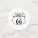 Wegweiser 66 auf weißem Grund und die Legende ROUTE US 66