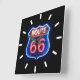 This 10.75" x 10.75"— "Acrylic wall clock is an eigenverantwortung decate element for a 20s, 40s, and 60s decade party! Here is a neon red, white and blue road 66 sign on black. White Clock Face.