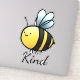 Eine Honigbiene über dem Wort "Kind", Sprichwort "Bee Kind" (Sei freundlich)