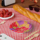 ART BRIGHT SHINY BLUME DESIGN RED GREEN MAUVE PAPPTELLER