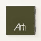Kunst nach Ihrem Namen personalisierte typografische Sketchbook Spiralnotebook. Weißer Text auf graugrünem Hintergrund.