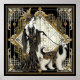 Art Deco 200 Elegante Flapper Lady & Hund in schwarz, creme und gold Poster